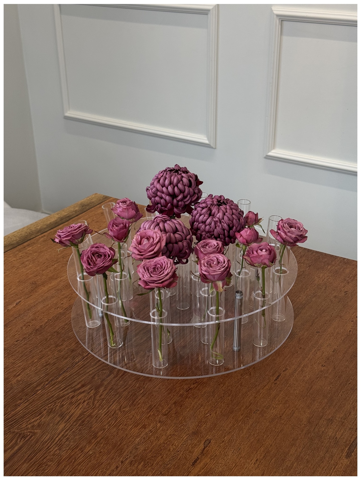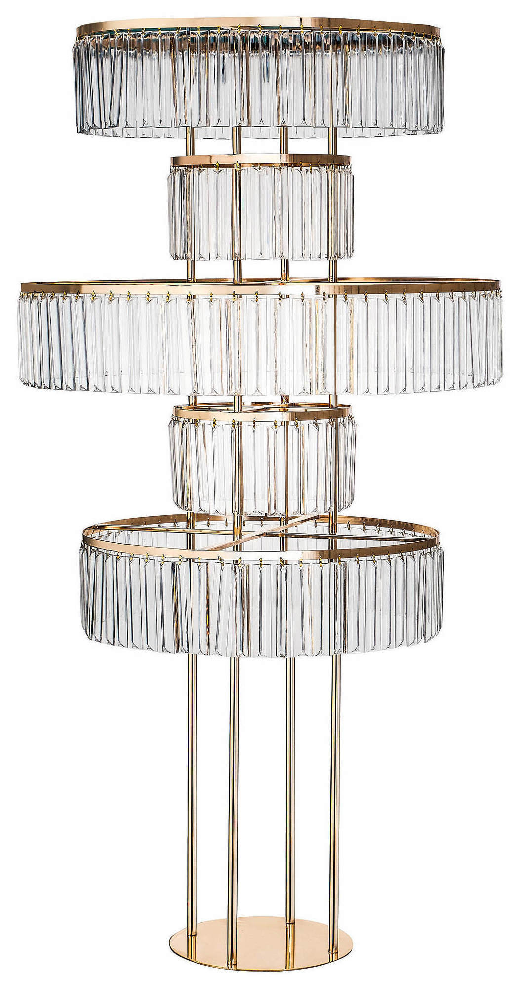 Металлическая стойка с акриловыми кристаллами на металлических кольцах.
